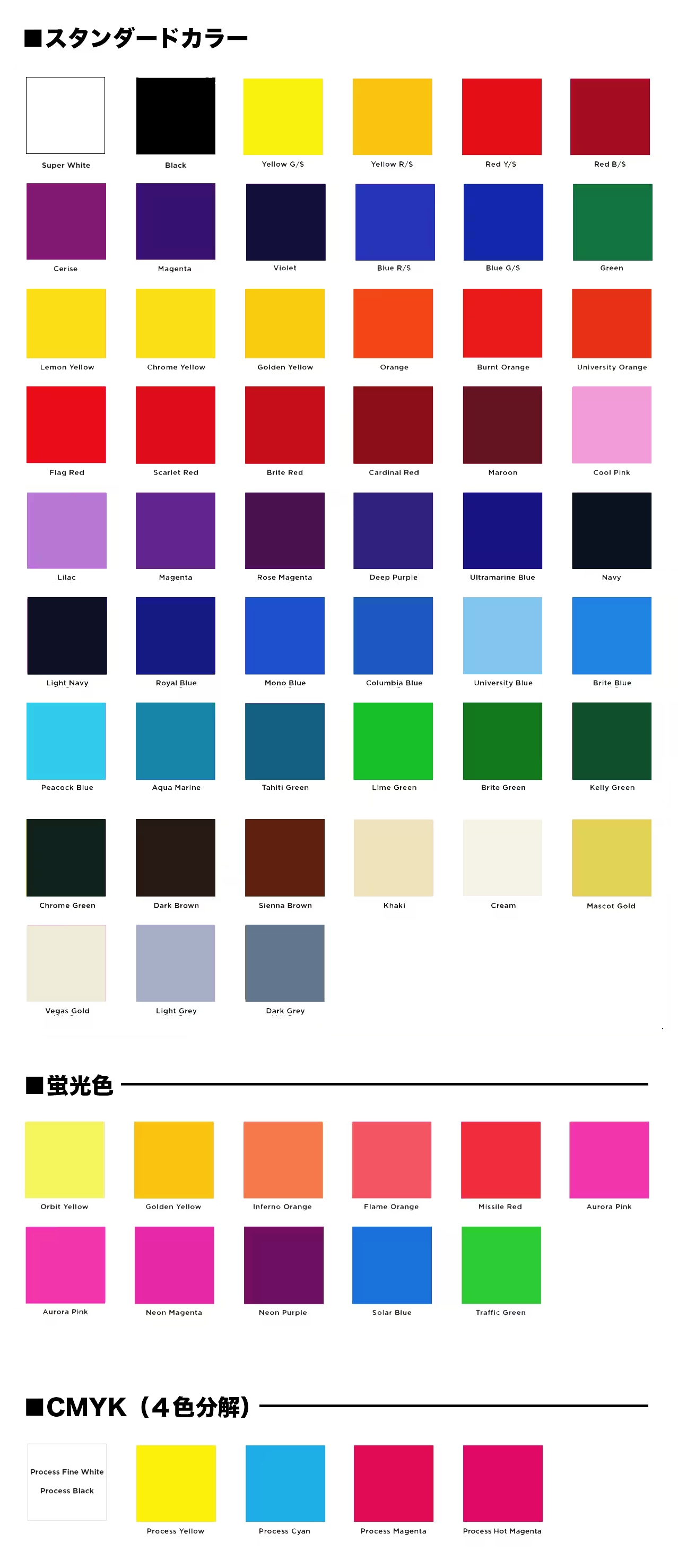 シルクスクリーンプリントのインクカラー見本です。
